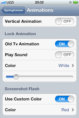 I have Springtomize installed on my iPad and use it for mainly three tweaks; every time I have an update available for an App or on Cydia the infamous red badge is attached to the icon which I find irritating and I know a lot of other people do too. Springtomize allows users to disable badges permanently. The second tweak I use is for the amount of icons in a row that are displayed in portrait mode. Now, I may be a freak for this but when I first purchased my iPad I realised that in landscape mode five icons were displayed in a row but four in portrait which was a little annoying to me (dont ask) but wasn't that big of a deal, Springtomize allowed me to tweak the number of icons in a row so no matter what orientation my iPad is in it will display the same number of icons in a row. The third tweak I use is the lockscreen animation. Many phones ago, I used to own a HTC Desire (great phone) which I rooted and installed a custom ROM some of you may already heard of - CyanogenMod. When turning off the lockscreen, CyanogenMod had a TV type effect which I loved but when I switched to iPhone (after going through a few other phones) there was not a jailbreak tweak that allowed me to add that same effect. Springtomize came through and gave me that awesome effect that I was seeking.
